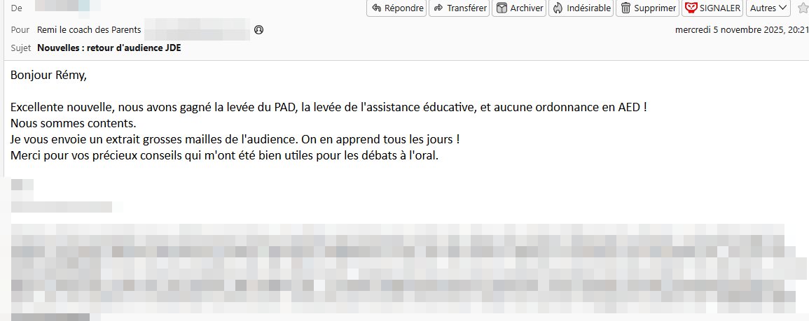 Ne manquez pas de vous inscrire sur le lien ci-dessus car tout va en découler pour vous. Même si votre enfant a été placé ou que l’on menace de le placer. Au sujet des placements, nous vous proposerons une stratégie et une tactiques, sans avocat.